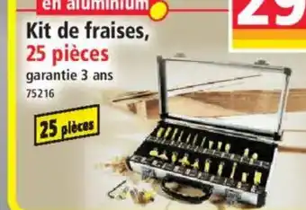 L'offre est disponible dans plusieurs magasins, vérifiez tous les produits pour obtenir le Kit de fraises, 25 pièces le moins cher. Si vous souhaitez savoir si l'article est en vente avec une plus grosse remise dans un autre magasin, consultez la catégorie 'Bazar et Déstockage'. Ces offres pourraient aussi vous intéresser : Kit outils 52 pièces, Kit de forets HSS, 202 pièces & Bûche charlotte aux fraises.