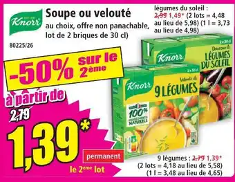 Offre Knorr soupe ou velouté légumes du soleil chez Norma