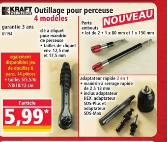 Découvrez les produits les moins chers parmi toutes les offres ! Si vous voulez savoir si Norma propose la meilleure remise pour KRAFT Outillage pour perceuse, comparez-la sur la page thèmes ou avec d'autres magasins.