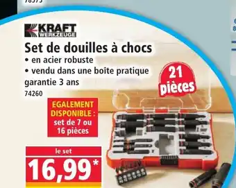 L'offre est disponible dans plusieurs magasins, vérifiez tous les produits pour obtenir le KRAFT Set de douilles à chocs le moins cher. Si vous souhaitez savoir si l'article est en vente avec une plus grosse remise dans un autre magasin, consultez la catégorie 'Bazar et Déstockage'. Ces offres pourraient aussi vous intéresser : PARKSIDE Set d'embouts ou douilles, KRAFT Set de roulettes & PARKSIDE Set de douilles et d'embouts.