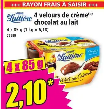 La laitière 4 velours de crème chocolat au lait offres et promotions en ligne chez Norma