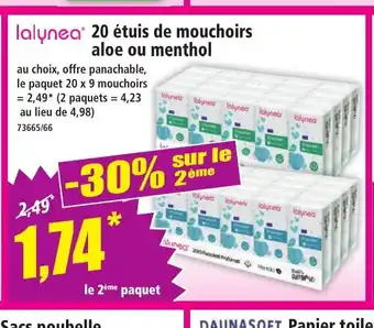 Actuellement en offre chez Norma : LALYNEA 20 étuis de mouchoirs aloe ou menthol ✅ Valable du 21-01 au 27-01.