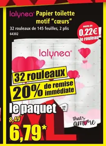 Offre LALYNEA Papier toilette motif cœurs chez Norma