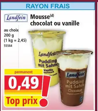 Offre Landfien mousse chocolat ou vanille chez Norma