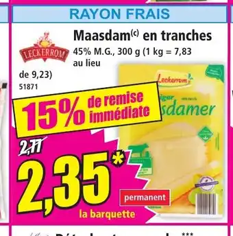 Actuellement en offre chez Norma : LECKERROM Maasdam en tranches ✅ Valable du 14-01 au 20-01.