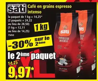Actuellement en offre chez Norma : LES CAFES SATI Café en grains espresso intenso ✅ Valable du 18-03 au 24-03.