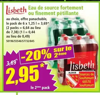 Actuellement en offre chez Norma : LISBETH Eau de source fortement ou finement pétillante ✅ Valable du 28-01 au 3-02.