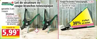 En plus de l'offre Lot de sécateurs ou coupe-branches telescopique, Norma propose une large gamme de produits. Consultez le Catalogue Norma hebdomadaire pour découvrir les meilleures offres et promotions. En plus de Lot de sécateurs ou coupe-branches telescopique, il y a aussi : Gardenstar coupe-branches universel télescopique, Coupe-branches multifonctions télescopique upx86 & Coupe-branches télescopique telecut pro l.
