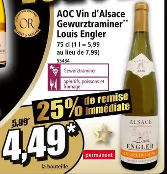 Actuellement en offre chez Norma : Louis engler aoc vin d'alsace gewurztraminer ✅ Valable du 22-12 au 30-12.