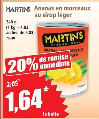 Offre Martin's ananas en morceaux au sirop léger chez Norma
