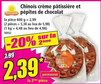 Matindoux chinois crème pâtissière et pépites de chocolat : offres et promos Norma à découvrir