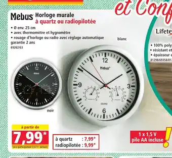 Offre MEBUS Horloge murale à quartz ou radiopilotée chez Norma