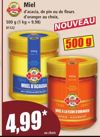 Miel bénéficie actuellement d'une réduction chez Norma. Vous trouverez ici toutes les infos utiles sur les prix, la durée de validité et les conditions de l’offre. Pensez à consulter aussi d'autres offres et promotions similaires pour Miel afin d’acheter toujours au bon prix. La promo Miel est valable du 28-01-2026 au 03-02-2026. Offre terminée ? Pas de souci. D'autres offres sur ces produits sont peut-être déjà disponibles. Vous pouvez suivre cette catégorie de produits pour rester informé en cas de nouvelle promotion Miel chez Norma. En comparant les offres, vous êtes sûr d’acheter au prix le plus bas possible.Questions fréquemment posées au sujet de Miel