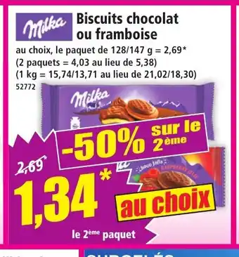 Actuellement en offre chez Norma : MILKA Biscuits chocolat ou framboise ✅ Valable du 4-03 au 10-03.