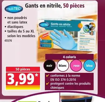 Offre MULTITEC Gants en nitrile, 50 pièces chez Norma