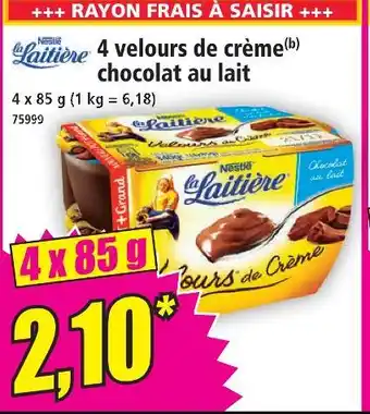 Actuellement en offre chez Norma : Nestle la laitiere 4 velours de crème chocolat au lait ✅ Valable du 21-01 au 27-01.