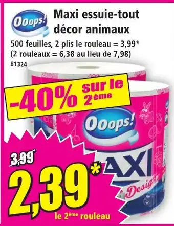 Actuellement en offre chez Norma : OOOPS Maxi essuie-tout décor animaux ✅ Valable du 4-02 au 10-02.