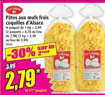 Pâtes aux œufs frais coquilles d'alsace : offres et promos Norma à découvrir