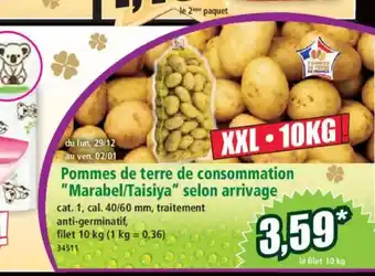 Offre Pommes de terre de consommation Marabel/Taisiya selon arrivage chez Norma