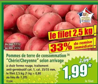 En plus de l'offre Pommes de terre de consommation, Norma propose une large gamme de produits. Consultez le Catalogue Norma hebdomadaire pour découvrir les meilleures offres et promotions. En plus de Pommes de terre de consommation, il y a aussi : Pommes de terre de consommation intermarché terroirs, Intermarché terroirs pommes de terre de consommation & Pommes de terre de consommation chérie/cheyenne selon arrivage.