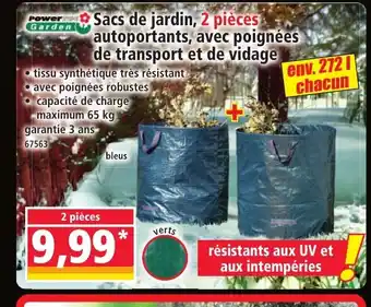 Offre POWER GARDEN Sacs de jardin, 2 pièces autoportants, avec poignées de transport et de vidage chez Norma