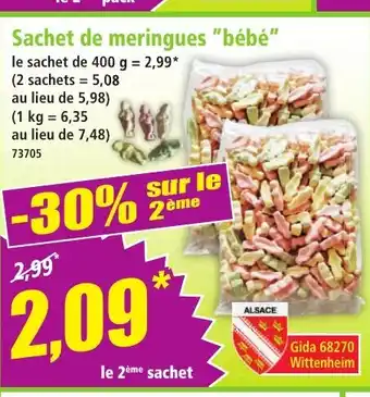Actuellement en offre chez Norma : Sachet de meringues bébé ✅ Valable du 28-01 au 3-02.