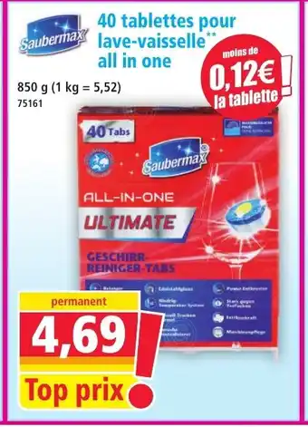 SAUBERMAX 40 tablettes pour lave-vaisselle all in one : offres et promos Norma à découvrir