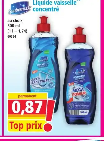 Actuellement en offre chez Norma : SAUBERMAX Liquide vaisselle concentré ✅ Valable du 21-01 au 27-01.