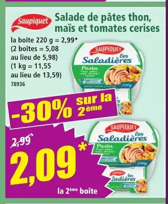 Actuellement en offre chez Norma : SAUPIQUET Salade de pâtes thon, maïs et tomates cerises ✅ Valable du 18-03 au 24-03.
