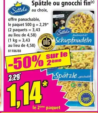 Offre Settele spätzle ou gnocchi fin chez Norma