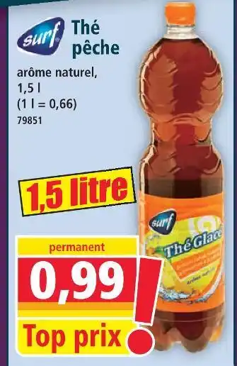 Actuellement, Surf thé pêche est en promotion chez Norma. Toutes les informations utiles comme le prix, les conditions et la durée de validité sont affichées sur cette page. Consultez également les promotions similaires pour Surf thé pêche, afin de faire le meilleur choix. La promo Surf thé pêche est valable du 25-02-2026 au 03-03-2026. Si elle est expirée, regardez les autres offres équivalentes. Vous pouvez aussi suivre cette catégorie de produit pour être alerté lorsqu’une nouvelle promotion Surf thé pêche apparaît chez Norma.Questions fréquemment posées au sujet de Surf thé pêche