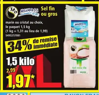 Actuellement en offre chez Norma : TAO MEANDROS Sel fin ou gros ✅ Valable du 11-02 au 17-02.