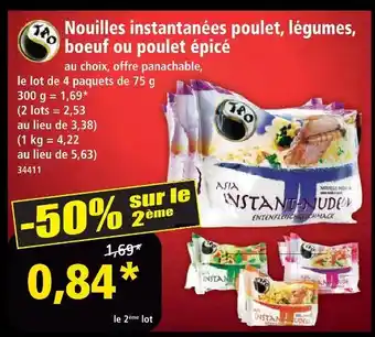 En plus de l'offre Tao nouilles instantanées poulet, légumes, boeuf ou poulet épicé, Norma propose une large gamme de produits. Consultez le Catalogue Norma hebdomadaire pour découvrir les meilleures offres et promotions. En plus de Tao nouilles instantanées poulet, légumes, boeuf ou poulet épicé, il y a aussi : Nouilles instantanées poulet, légumes, boeuf ou poulet épicé, Nouilles chinoises au poulet et légumes & NOUILLES INSTANTANÉES AU POULET YUM YUM.