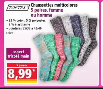 TOPTEX Chaussettes multicolores 5 paires, femme : offres et promos Norma à découvrir