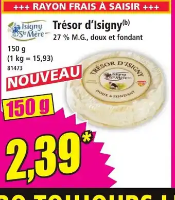 En plus de l'offre Trésor d'Isigny, Norma propose une large gamme de produits. Consultez le Catalogue Norma hebdomadaire pour découvrir les meilleures offres et promotions. En plus de Trésor d'Isigny, il y a aussi : Crème d'isigny crème d'isigny aop 40% de mat. gr, Crème d'Isigny AOP & Kellogg's céréales trésor.