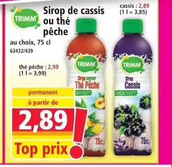 Offre TRIMM Sirop de cassis ou thé pêche chez Norma
