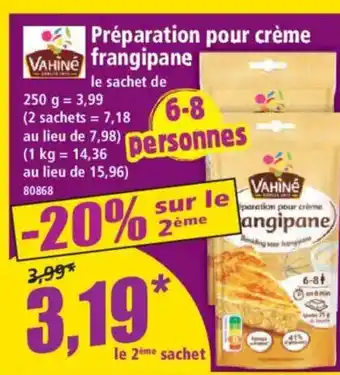 Actuellement en offre chez Norma : VAHINÉ Préparation pour crème frangipane ✅ Valable du 29-12 au 4-01.