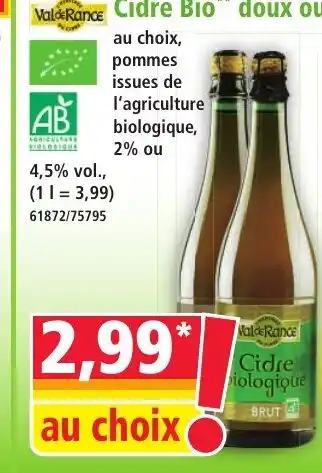 Actuellement en offre chez Norma : VALDE RANCE Cidre Bio doux ou brut ✅ Valable du 14-01 au 20-01.