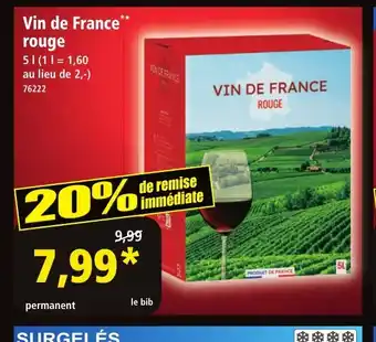 L'offre est disponible dans plusieurs magasins, vérifiez tous les produits pour obtenir le Vin de France rouge le moins cher. Si vous souhaitez savoir si l'article est en vente avec une plus grosse remise dans un autre magasin, consultez la catégorie 'Bazar et Déstockage'. Ces offres pourraient aussi vous intéresser : VIGNOBLE ROY Génération, 2023 - Vin de France - Rouge - 75 cl, Radical Cassoulet BIO, 2022 - Vin de France - Rouge - 75 cl & Domaine des Coteaux blancs, Steve l'Intrépide - Vin de France - Rouge - 75 cl.