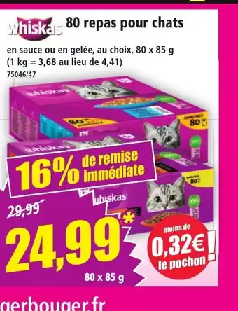 Actuellement en offre chez Norma : WHISKAS 80 repas pour chats ✅ Valable du 11-02 au 17-02.