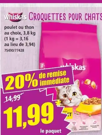 Actuellement en offre chez Norma : Whiskas croquettes pour chats ✅ Valable du 28-01 au 3-02.