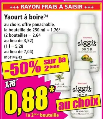 Le prix de l'offre Yaourt à boire se trouve également en haut de la page, ainsi que la date à laquelle l'offre est disponible. Vous pouvez également vérifier les prix dans le Catalogue Norma actuel ou sur le site Internet de Norma. Les offres vous permettent d'acheter les produits Norma au prix le plus bas.