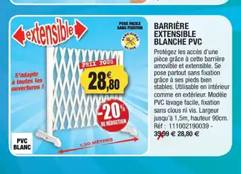 Actuellement en offre chez Outiror : Barrière extensible blanche pvc ✅ Valable du 15-09 au 31-12.
