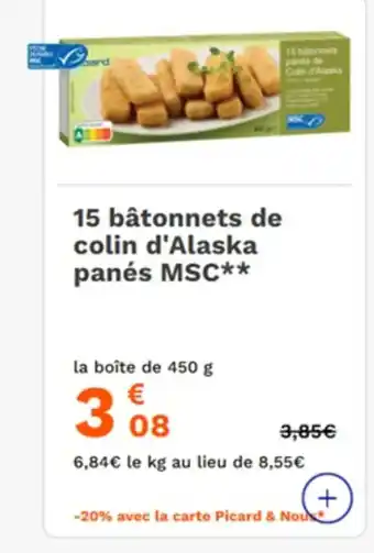 Offre 15 bâtonnets de colin d'Alaska panés MSC chez Picard