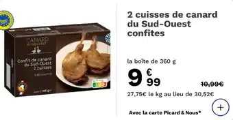 2 cuisses de canard du sud-ouest confites : offres et promos Picard à découvrir