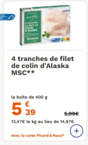 4 tranches de filet de colin d'Alaska MSC : offres et promos Picard à découvrir