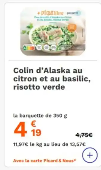 Colin d'Alaska au citron et au basilic, risotto verde : offres et promos Picard à découvrir