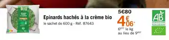 Offre Epinards hachés à la crème bio chez Picard