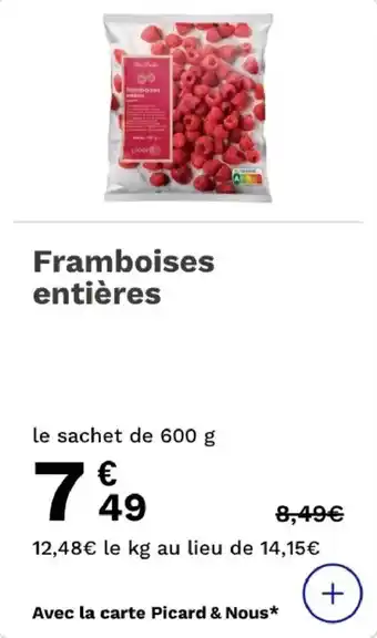 Le prix de l'offre Framboises entières se trouve également en haut de la page, ainsi que la date à laquelle l'offre est disponible. Vous pouvez également vérifier les prix dans le Catalogue Picard actuel ou sur le site Internet de Picard. Les offres vous permettent d'acheter les produits Picard au prix le plus bas.