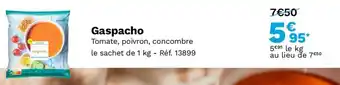 L'offre est disponible dans plusieurs magasins, vérifiez tous les produits pour obtenir le Gaspacho le moins cher. Si vous souhaitez savoir si l'article est en vente avec une plus grosse remise dans un autre magasin, consultez la catégorie 'Supermarché'. Ces offres pourraient aussi vous intéresser : Verrines de chèvre gaspacho de légumes, offre 2 & offre 3.